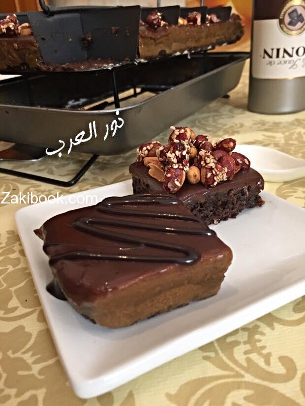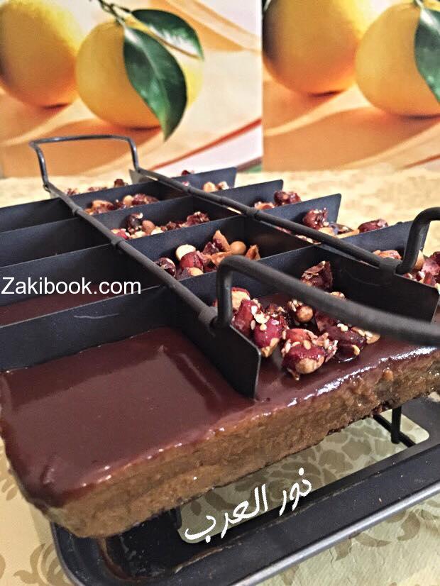 وزينت المربعات بصوص الشوكلا وفي بعض من المربعات زينتهن بفول سوداني محمص مكرمل مع السمسم ( عملته من فترة ومخزنته وبستخدمه للزينة ) وصحتين ..