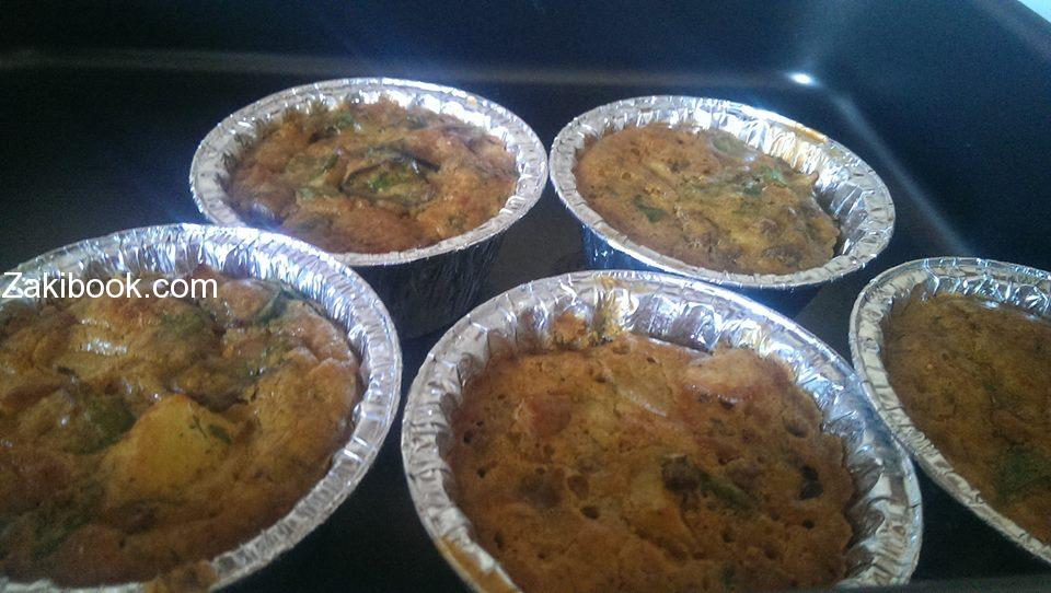 ثلاث بيضات /نصف كوب زيت / نصف كوب حليب / ملعقة صغيرة ملح / ملعقة صغيرة فلفل أسود /رشة قرفة/ نصف كوب دقيق/ ملعقة كبيرة بيكباودر / مكعبات بطاطا مقلية / مكعبات بتنجان مقلية /مكعبات كوسا مقلية/معدنوس مفروم ناعم /ممكن أضافة شرائح زيتون وجبنة مثلتات او جبنة مبشورة