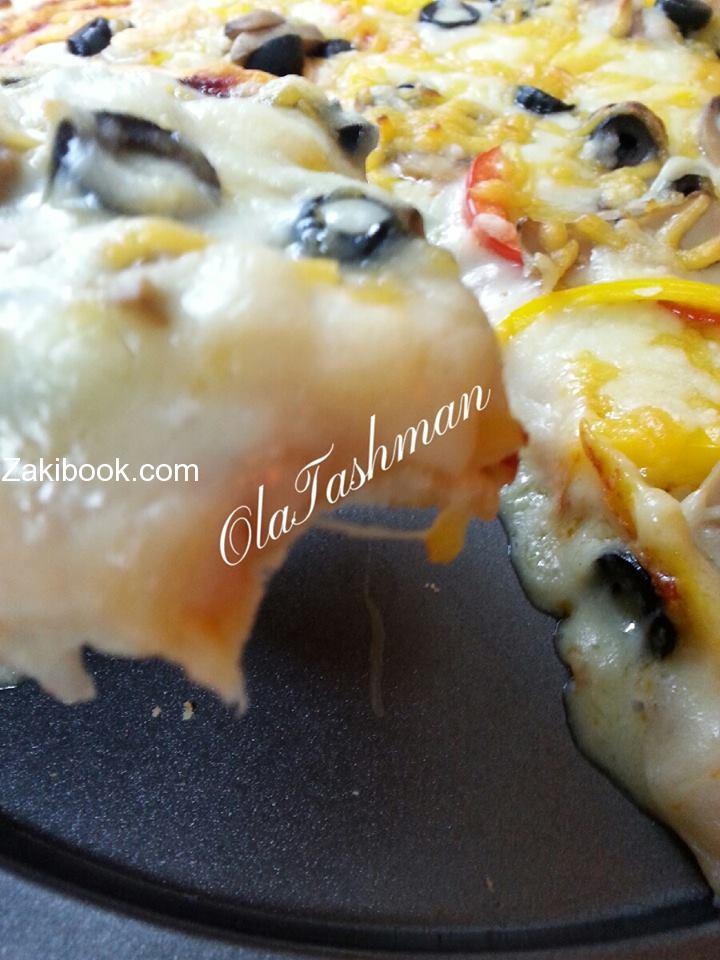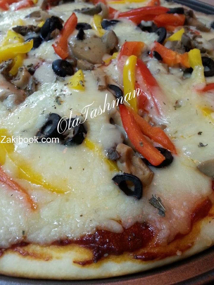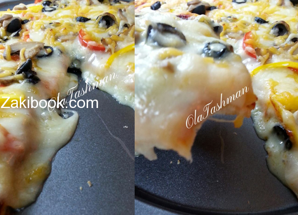 وبنتركها تبرد شوي … بنرش على وجه العجين موزريلا وبعدين بنحط الخضار الي بتحبوها وبعدين جبنة موزريلا .. بندخلها الفرن على 180 من تحت حتى تتحمر العجينه وذوب الجبنه …. الف صحه
