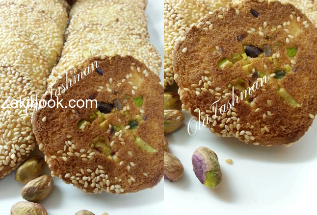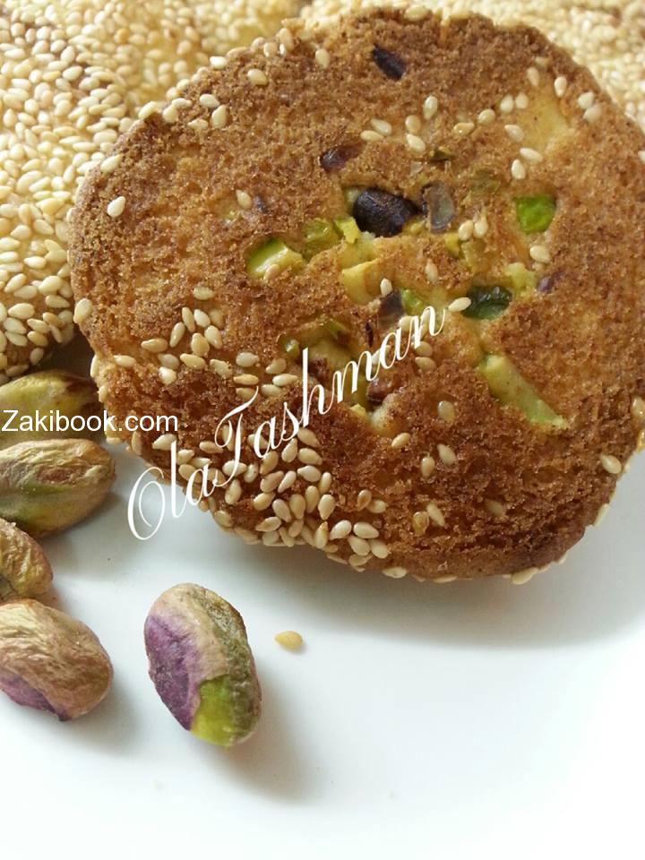 او اخلطو السمسم مع القطر ورشو السمسم على الوجه .. وعلى الفرن 180 درجة الحراره الرف الوسط ..
