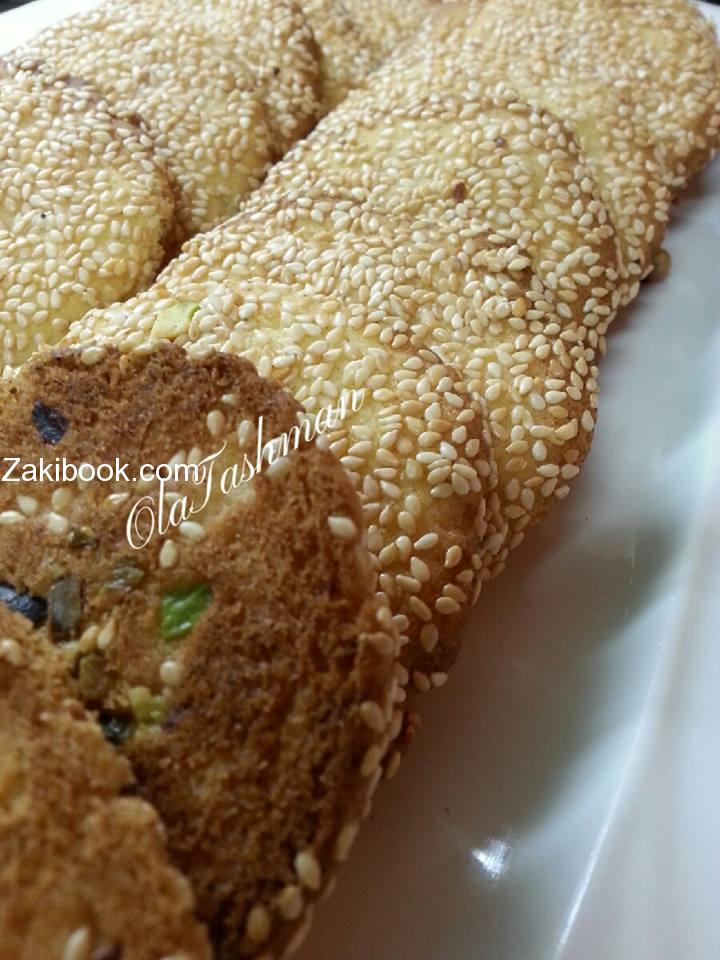 وبنشتغل فيهم .. بنعمل كره وبنضغط عليها وبندهن الوجه قطر وبتحطوها بصحن السمسم ..