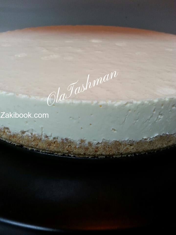 بخلاط الكيك .. 2 ظرف دريم ويب او اي نوع كريمه بودره..نص كاس حليب سائل بارد.. علبة جبنة فيلادلفيا او 12 حبة جبنة كيري ..عصير نص ليمونه …علبة قشطه 170غ .. علبة حليب نسله مكثف 390 غ … مغلف جيلاتين بنذوبه بتلت كوب ماء ساخن … بنخفقهم كتير منيح ..بالترتيب الي ذكرتو … مدة الخفق 7 دقائق حتى تتاكدو الجبنه انها ذابت والخليط سمك .. بنصبو فوق الطبقه الاولى ..وعلى الفريزر 4 ساعات .حتى يجمد…