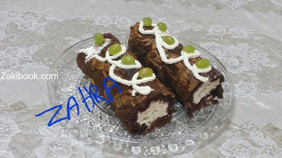 وبعدين حطي خليط الكيك ودخليها الفرن من 10 دقائق إلى 15 دقيقة لحد ما تستوي وبعد ما يطلع من الفرن ادهني الكيكة مربه وكريمة ولفيها وهي سخنه وحطيها بالفريزر حتى تتماسك وبعدين طلعيها وقطيها وقدميها وصحتين وهناء