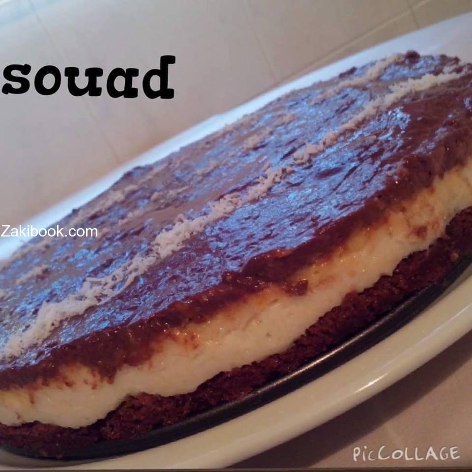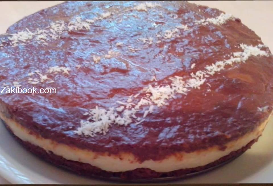 نضع الكيك في صينية التشيز كيك ثم نضع فوقه خليط الطبقة الثانية ثم نضع بحذر الطبقة الثالثة وندخله البراد ليتماسك. صحة وهنا