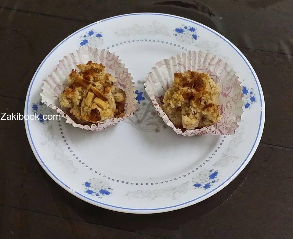 جيبي قوالب الكب كيك وحطي فيها قوالب الورق وزعي الخليط على القوالب وزيني الوجه بالمكسرات ودخليها الفرن حتى تستوي وبعدين حطي عليها عسل أو حطي شربات ويفضل تكون معموله بسكر دايت