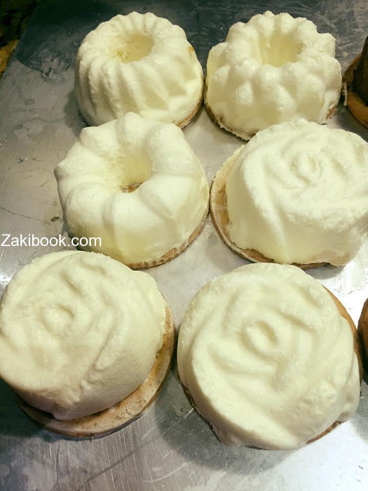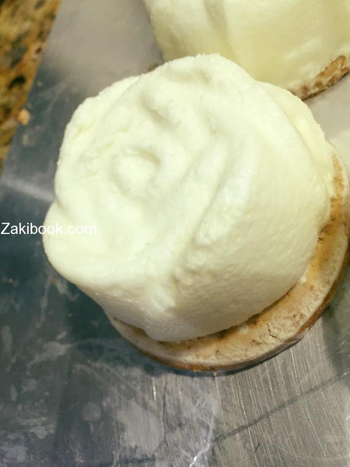 اولا يتم خفق الكريمه في كوب ماء بارد جدا حتى يتضاعف الحجم ويتم اضافة جميع المقادير مع استمرار الخفق حتى يصبح المزيج سلس وملس