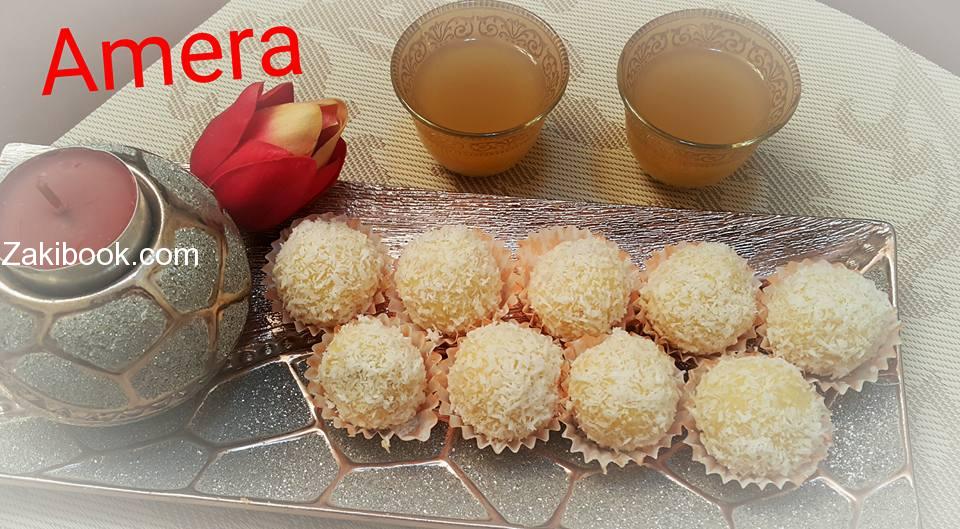 2كأس جوز هند بنخلط معه نص كأس حليب بودرة ونص كأس سكر مطحون ونعجن بعلبة قشطة وندخل البراد نص ساعة