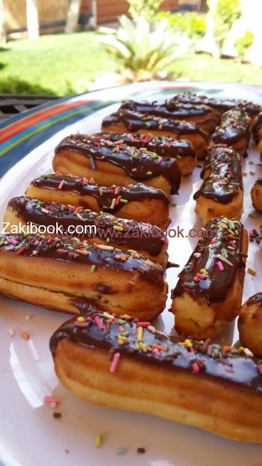 الكسترد :كاستين حليب و4 ملاعق كسترد وسكر متل ما بتحبي وغليون مع التحريك وبرديون واحشي فيون الاكلير.