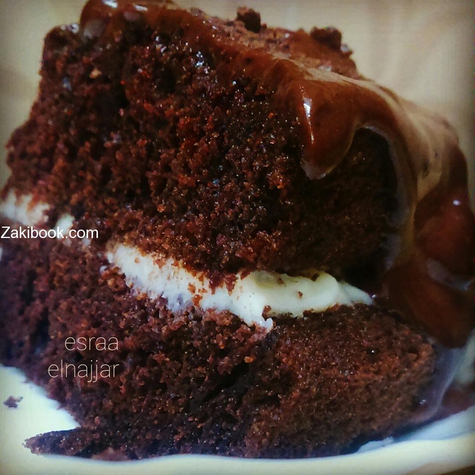 كيكة الشكولاتة المحشية والمغلفة بصوص الشكولاتة