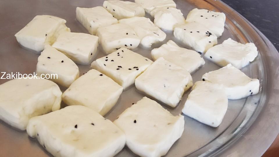 بنفحص قطعة الجبنة بأصبعتنا لازم تكون طرية متل العلكة لازم نضغط بالسبابة واﻷبهام عالقطعة لازم تكون متل المعجون أو العلكة أو مطاطية بتكون جاهزة اذا ﻷ بننتظر كمان دقيقة وبنختبرا
