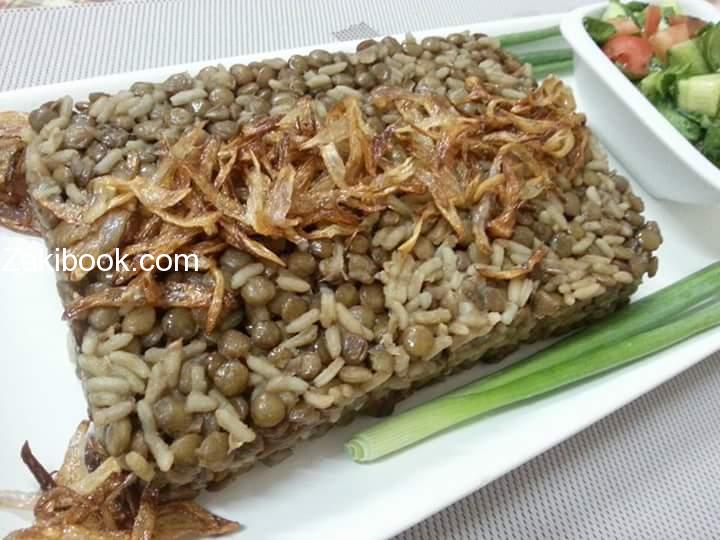 يقلي البصل المفروم جوانح في زيت الزيتون ويؤخذ نصف الكمية تضاف للعدس مع زيت القلي .ويضاف ثلث كمية العدس رز امريكي وفوق غمرتهم ب 1 سم ماء ساخن وملعقة كمون…