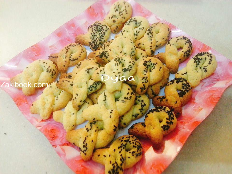 يوضع الكعك في الفرن ربع ساعة من اسفل ثم تحت الشواية حتى يشقر اللون..