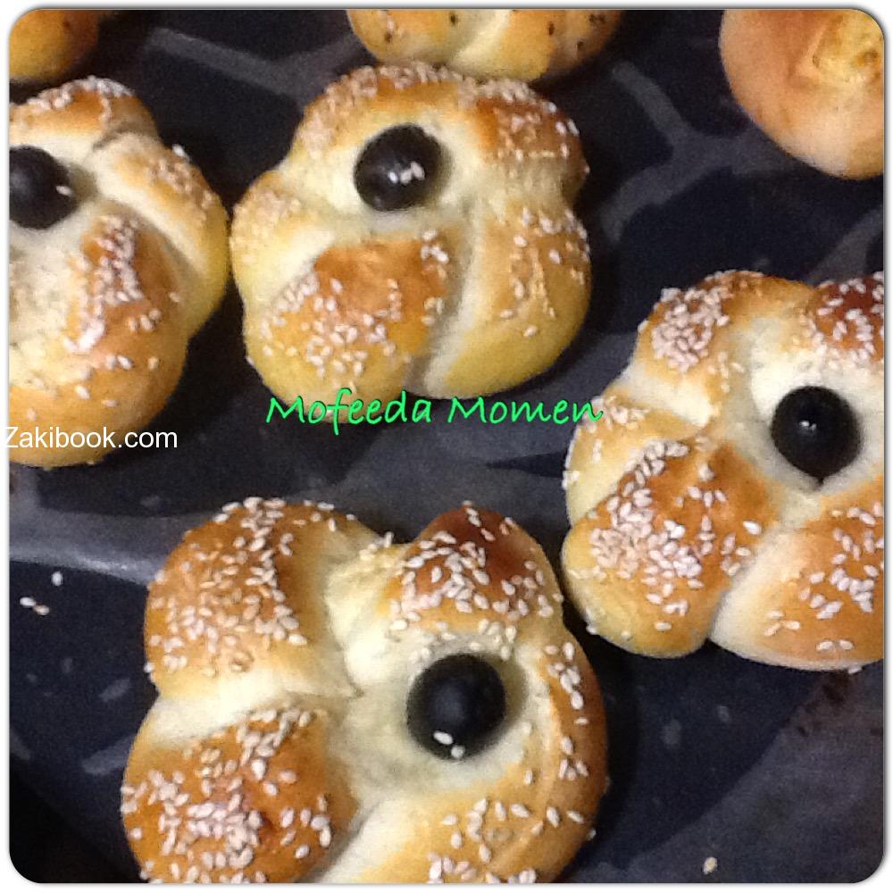 تشكل كما في الصور وتدهن بالبيض وتحشي بالجبن والزيتون وتترك تخمر مرة ثانية