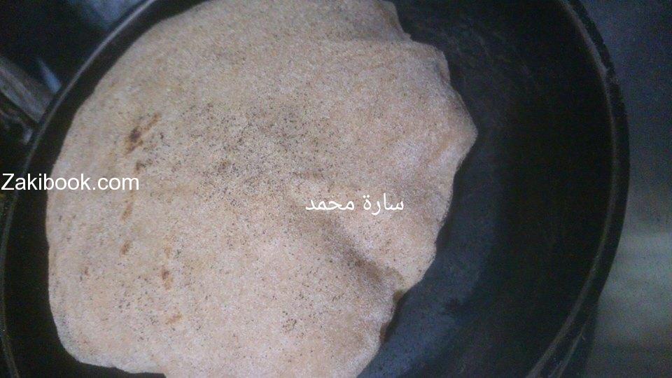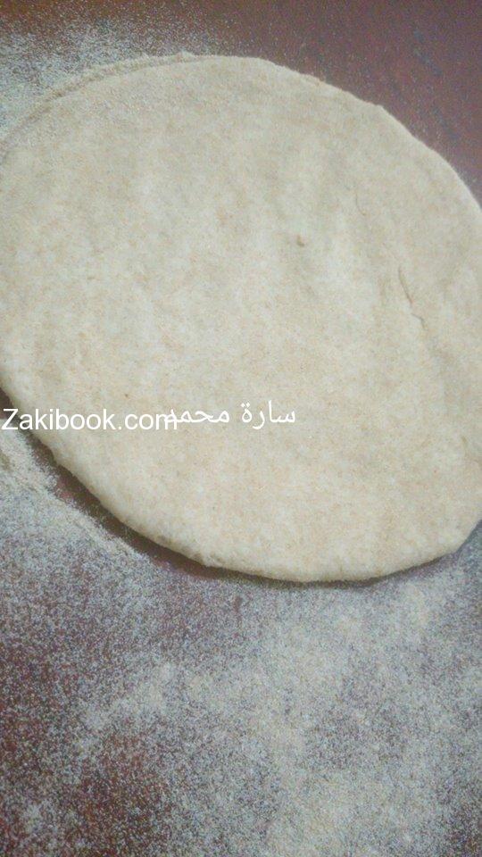 ونكمل العجن بماء دافئ تكون العجينة لينه وتترك تختمر نص ساعة وبعدين نفردها على نخالة انا سويتها ع الغاز في طاسه تفال لو حابه بالفرن مفيش مشكلة