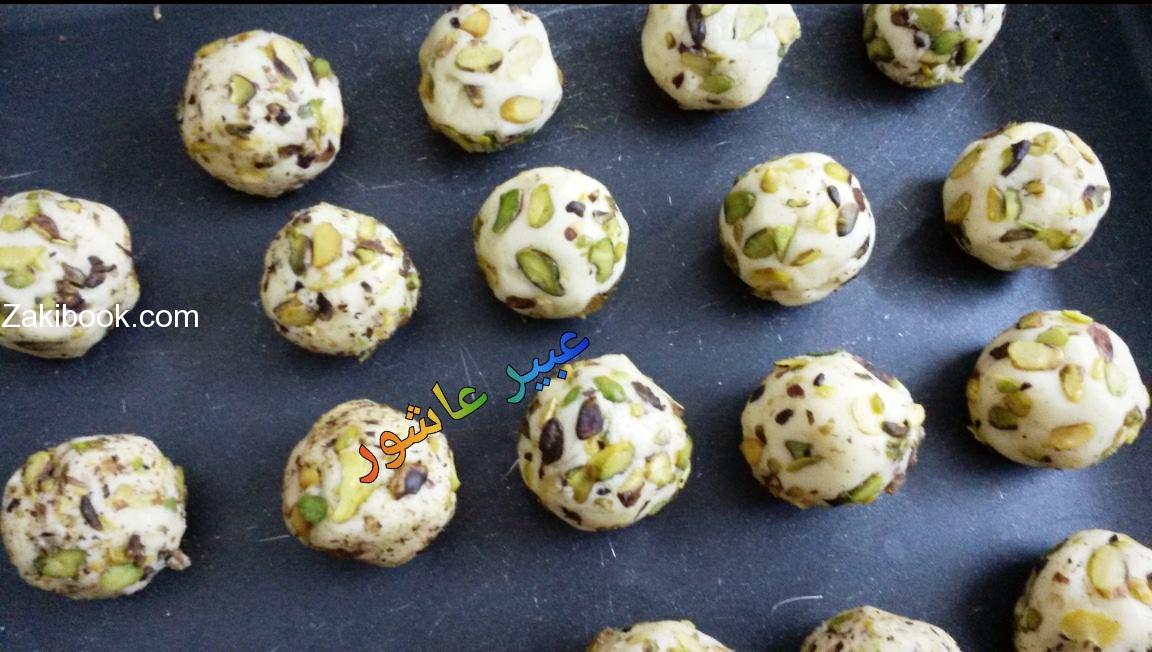أما نشكلها بشكل دائري أو طولي حسب الرغبة ونمررها على الفستق الحلبي وترتب بالصينية الفرن وتخبز بدرجة حرارة متوسطة مدة عشر دقائق والف صحة وهنا اختكم عبير عاشور
