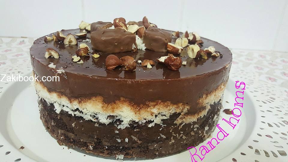 ضيفوها فوق خليط الكيك وجوز الهند شوي شوي وبلبراد حتى يمسك