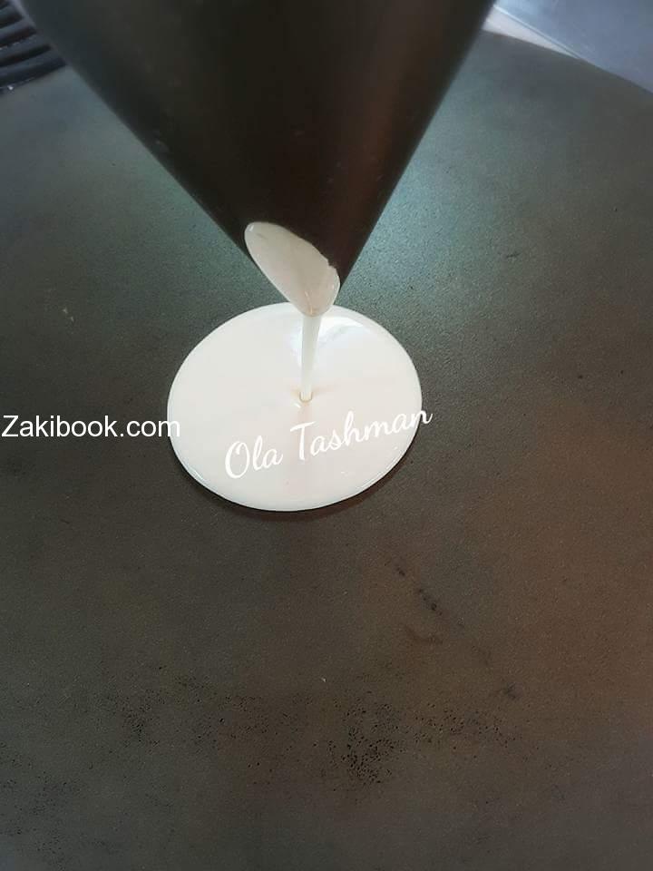 بناخد ربع معلقة كربونه وبنفورها بمعلقتين مي ساخنه وبنحطهم على الخليط ..وبنخفقها دقيقه . بنستني خمس دقائق وبنصب …