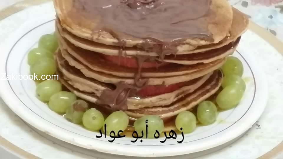 في الخلاط حطي جميع المكونات مع بعضها البعض واخفقيهم اتركيها 10 دقائق وبعدين في مقلاة غير لاصقة ضعي مقدار فنجان من خليط البان كيك وعندما تخرج الفقعات منه اقلبيها على الوجه الآخر وخليها تستوي يقدم مع العسل والفواكه أو الشوكلاته وبالهناءادمن زهرة ابو عواد