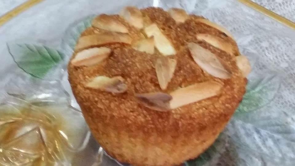توضع العجينه في قوالب الكب كيك بتكوني داهنها طحينيه أو قوالب السليكون وتزين بالوز وتترك ربع ساعة وبعدين حطي القوالب بالفرن حتي تستوي وتحمر من تحت ثم حمري وجه القوالب وعند ما تخرج من الفرن حطي الشربات واتركيها حتى تشرب الشربات