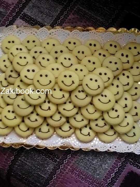 نضيف له ملون أصفر ونغطي به وجه البسكوت ونتركها تجف