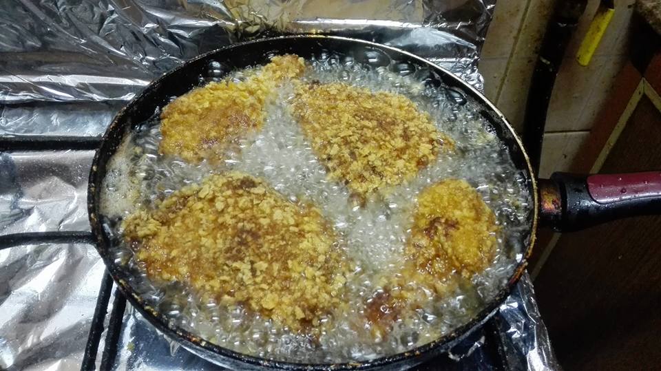 اما القشره الخارجيه طحين وكورن فليكس مكسر وليس مطحون مبهر بملح وفلفل وبودره ثوم وجنزبيل بيضه تضاف علي الدجاج ثم نضعه علي القشره الخارجيه ونضغط ونتركه بالبراد حوالي ساعه ونحضر زيت غزير ويكون ساخن ونضع فيه الدجاج علي نار عاليه لمده 10 دقايق