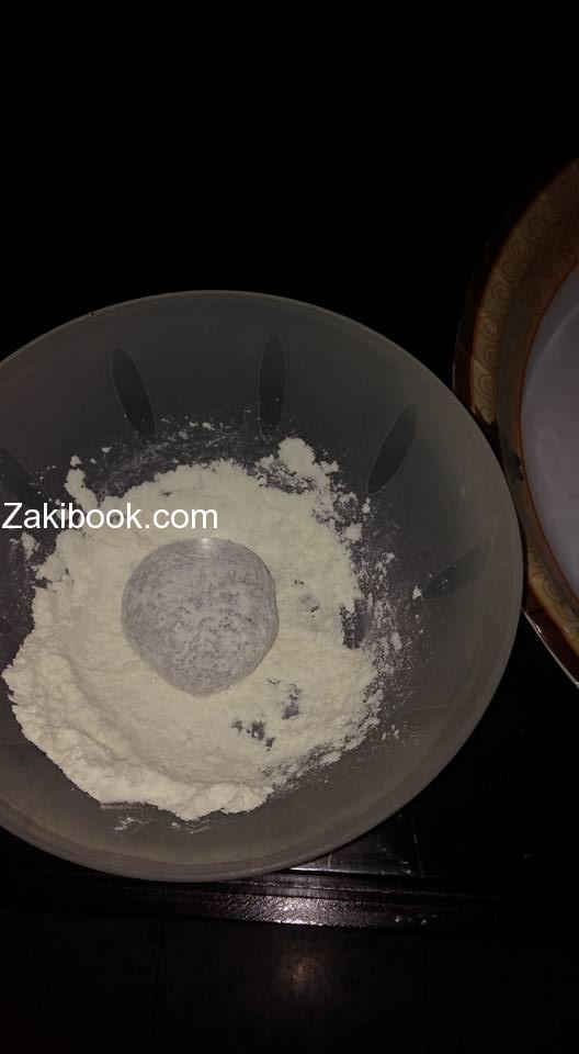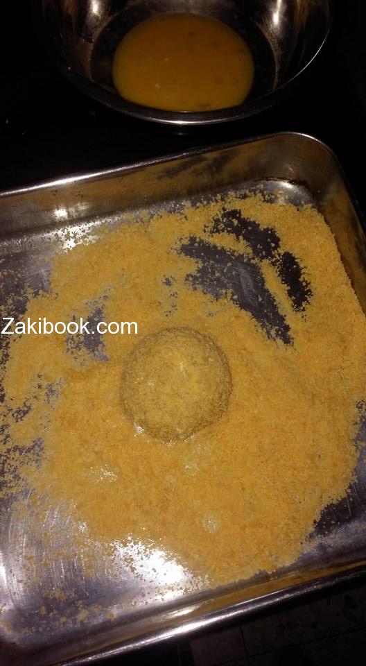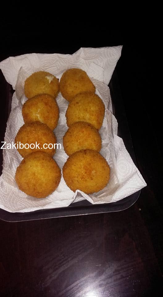 بعد ما ترتاح العجينه بتعمليها كرات و بتحشيها بجنبه موتساريلا وبتسكريها مليح بتغمسيها بطحين بالاول وبعدين بالبيض واخيرا بفتات الخبز بس