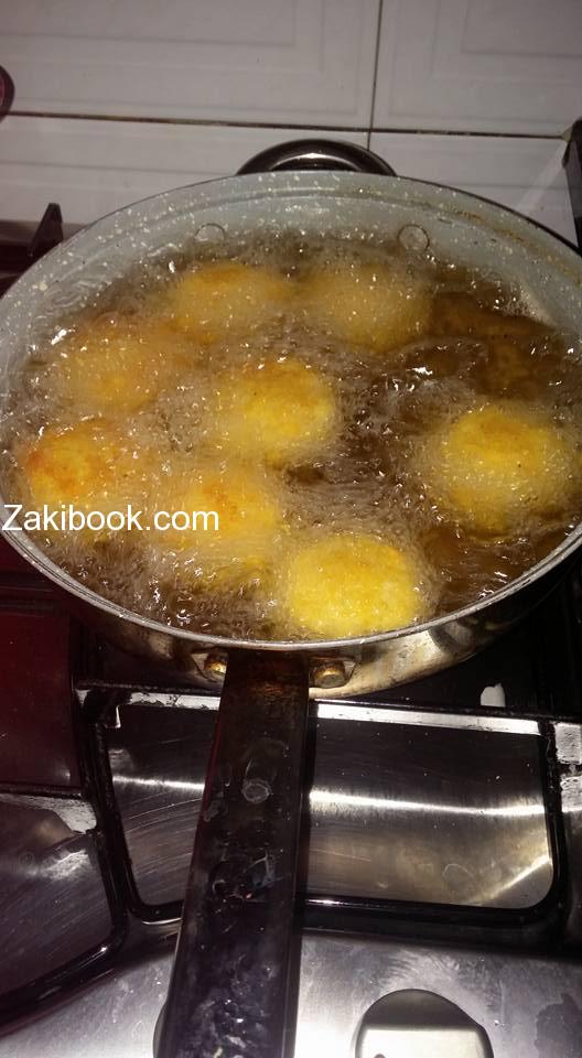 تخلصي الكميه كلها بتحطيها بالبراد نص ساعه بعدين بتقليها بزيت متوسط الحراره حتى تشقر .
