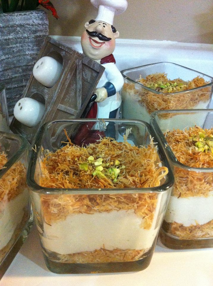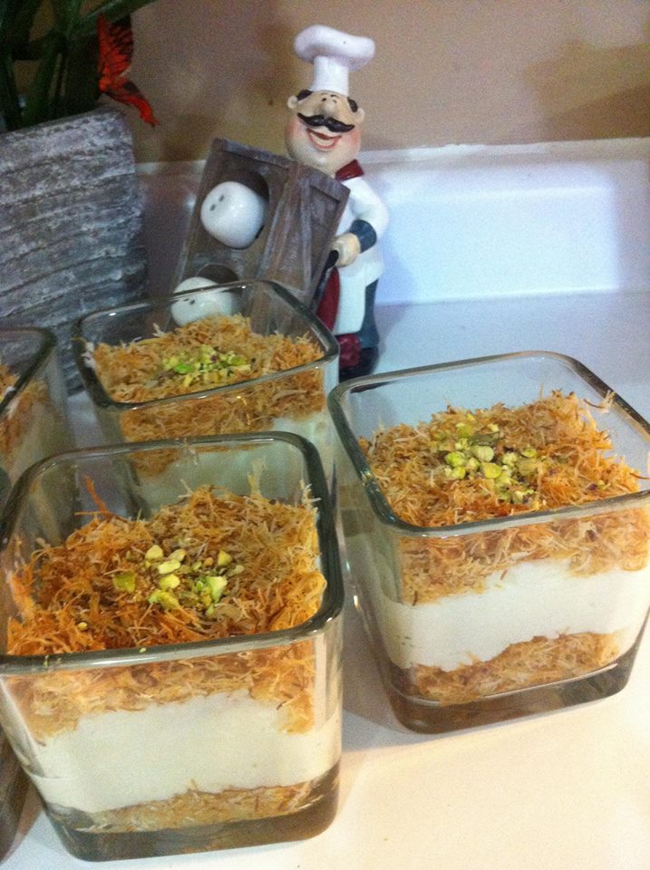 بعدها طبقة كنافة وبس وقت التقديم منحط فوقها شوية قطر وصحة