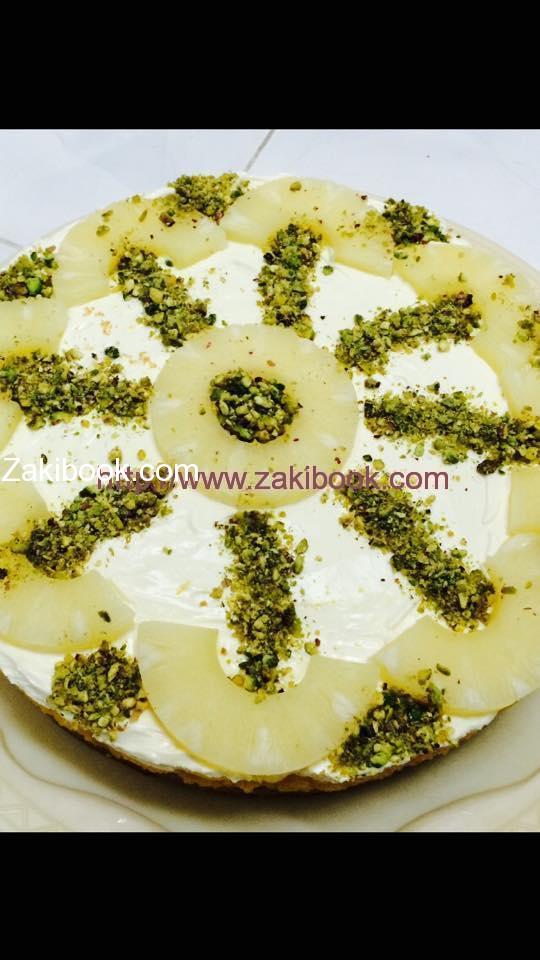 كيكة الاناناس، تعد كيكة الاناناس من أنواع الكيك المشهورة بطعمها الحلو والحامض الذي يميزها عن باقي أنواع الكيك ويعود الفضل في ذك الطعم الى فاكهة الاناناس الاستوائية ذات الطعم الحلو والحامض معا، كما ويحتوي الاناناس على كميات كبيرة من السكر ويحتوي أيضا على عدد من الفيتامينات كما ويعمل على ادرار السوائل في الجسم وينظف الدم كما يمنع تراكم الدهون في الاوعية الدموية وكما يحافظ على سلامة الاسنان، لذلك نقدم لكم وصفة كيكة الاناناس اللذيذة والمفيدة على منصة زاكي للطهي تقدمه لنا Ghalia Jamour المبدعة في فن الطهي والحلويات وصفة كيكة الاناناس الرائعة واللذيذة.