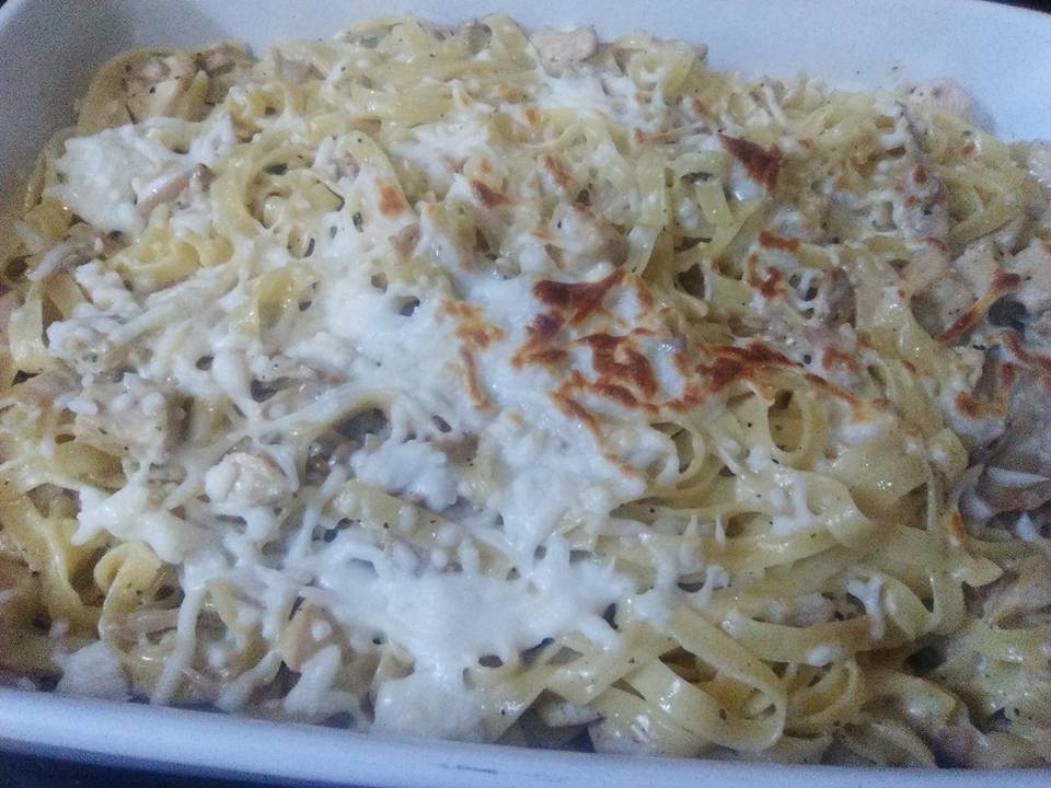 معكرونه فيتوشيني نسلقها عادي بماء مغلي فيه زيت وملح نحضر صدور الدجاج وبنقلبها على نار حاميه مع ملعقه زبده ونحط سن ثوم مفروم ناعم ونقلب ونضع الفطر ومكعب مرق وزعتر ناشف ونتركهم يتقلو مع بعض وبنضيف كريمه الطبخ وبنسبكها ونضع المعكرونه المسلوقه فوق الكريما ونغليهم غليتين وبنرش على وجها جبنه مبروشه وصحتين وعافيه
