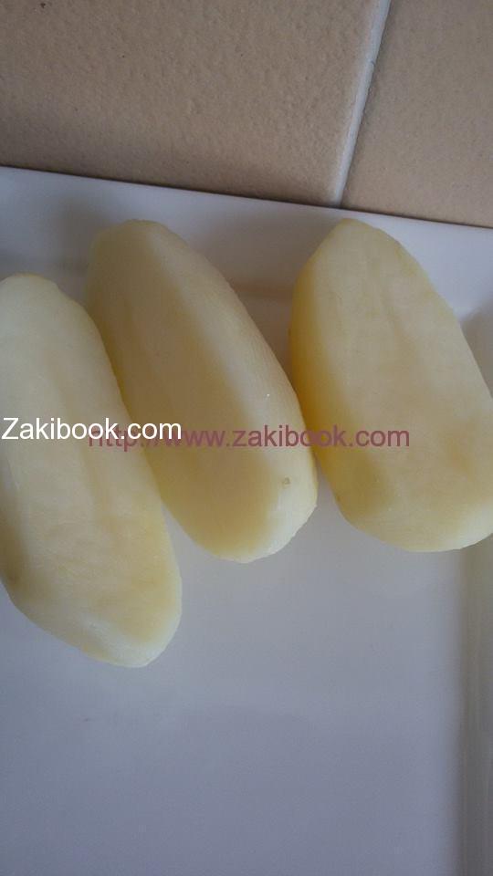 2- تقشر البطاطس وتقسم كل حبة على إثنين ،