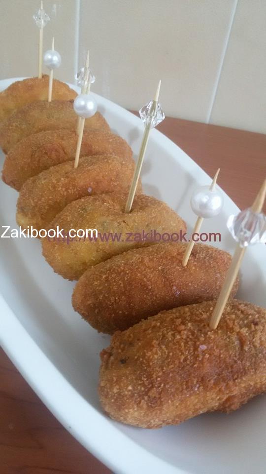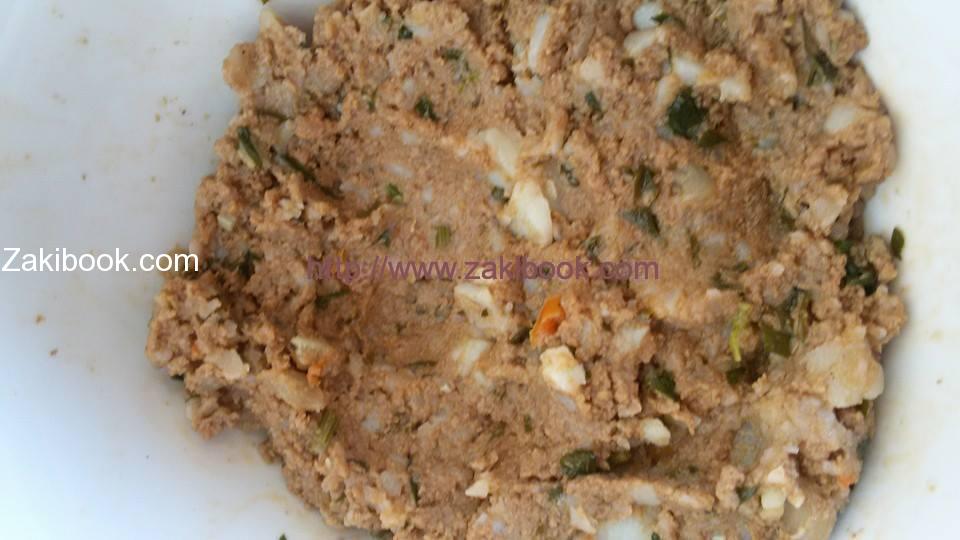 5 – وتحشى بخليط اللحم ، وتمرمد في الدقيق ، وتغطس بعدها في مخفوق البيض، ثم في مبشور الخبز اليابس وتترك ترتاح قليلا .