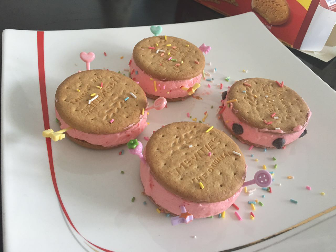 بنحط كل المكونات مع بعض وبنخفقن بالخفاقه ليتماسك بنتركن كم دقيقه بالبراد بعدين بنوزع الخليط فوق نص البسكوت والنص التاني بنحطو فوق الخليط يعني بصير عنا بسكوت و الخليط اللي خفقناه بعدين بسكوت و يوضع بالبراد مدة ساعتين ليجمد