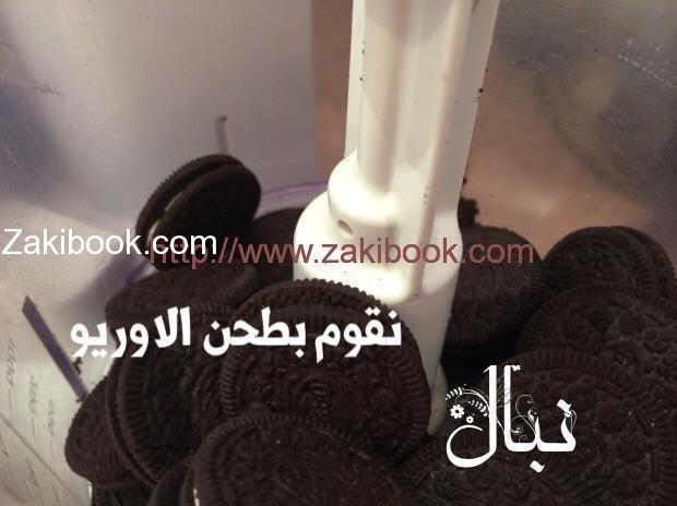 – ثم نعجن الأوريو مع جبنة كريمي, يمكن استخدام أي نوع.