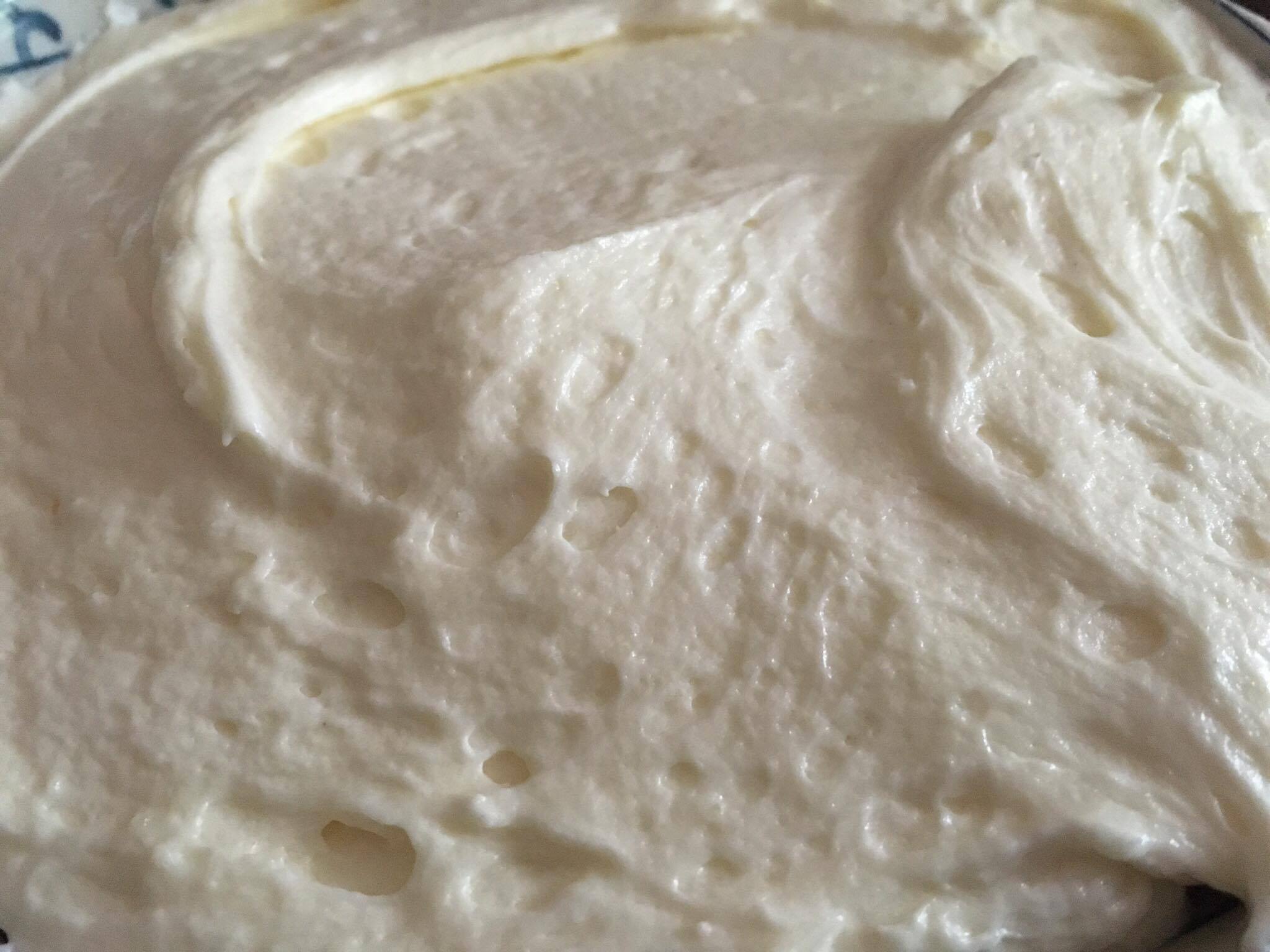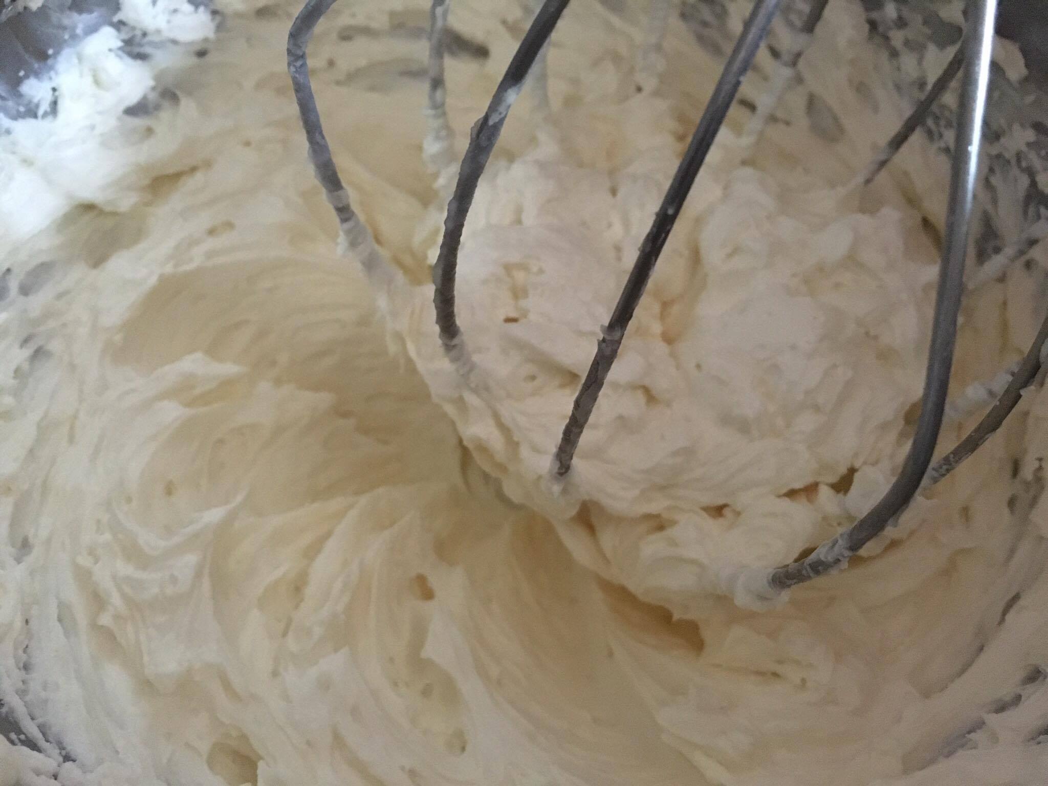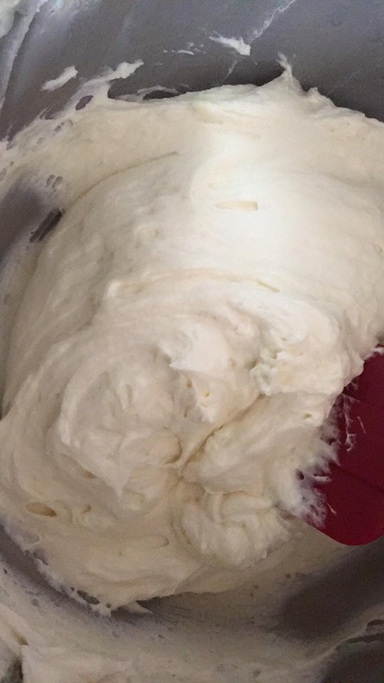 وا نخفق الزبده با الخفاقه او العجانه لاين تصير كريميه وا نبدأ نضيف عليها من خليط النشاء الي جهزنها شوي شوي مع الخفق طبعا وا هكذا حتئ تنتهي كل الكميه معنا وا من ثما نستمر با الخفق كمان شوي وا رح يُبين معنا كيف رح يختلف لونها وا قوامها وا بعدين نغطي عليها او نستعملها عطول نستخدمها للحشو وا التزيين كمان روعه Monaliza Albo