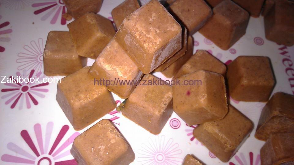 تسلم ايدك بعملها وفعلا أحلي وانضف ولتسهيل تشكيلها بحطها في صينيه مستطيله وابطنها بالبلاستك الاسترتش ولما تجمد اقطعها مربعات بالسكين واحطها في اكياس للحفظ بس لازم تتحفظ بالفريزر لأنها سوف تخرب في الثلاجة لأنها طبيعية ما فيها مواد حافظه.