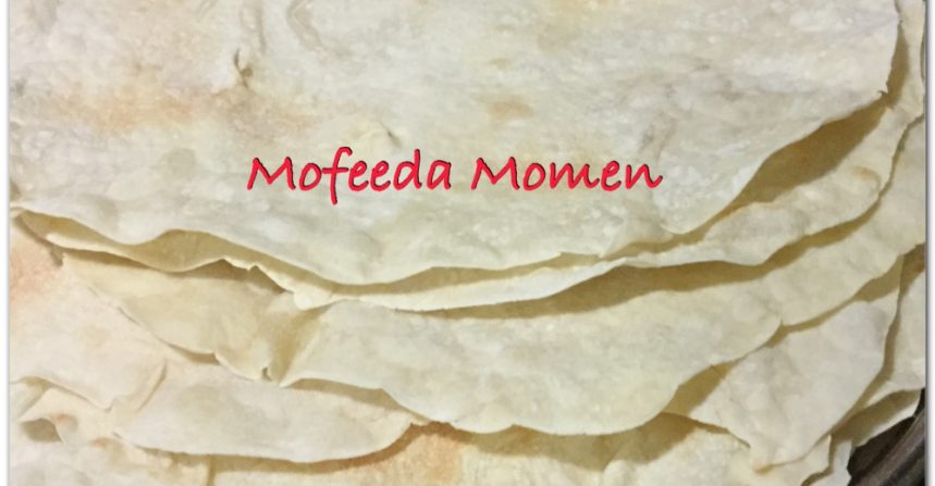 تُعجن العجينة وتترك ترتاح حتي تخمر نصف الساعة ثم تقطع كريات للفرد وتترك ترتاح ربع ساعة -تفرد كل كرة بالدقيق ولازم كمية الدقيق تكون كبيرة حتي تصبح العجينة رقيقة جدا