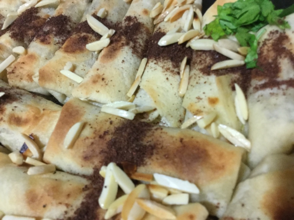 خبز الشراك او خبز الصاج او اي خبز عربي -لوز مقطع اوصنوبر اختياري الحشو الزينة