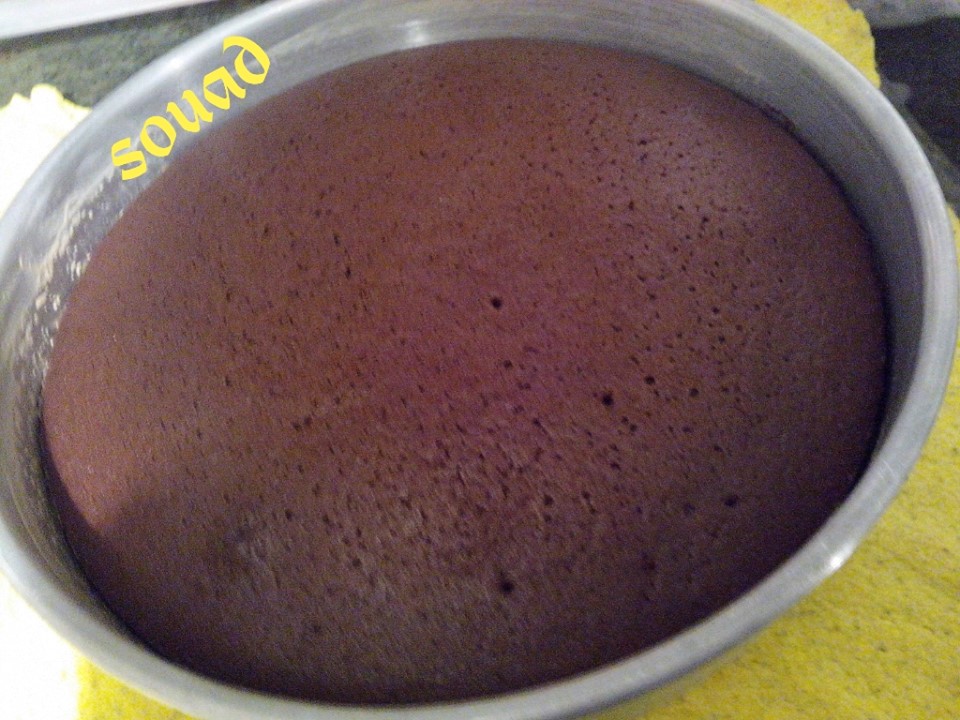 نترك الكيك حتى يبرد ثم نضيف صوص الشوكولا .