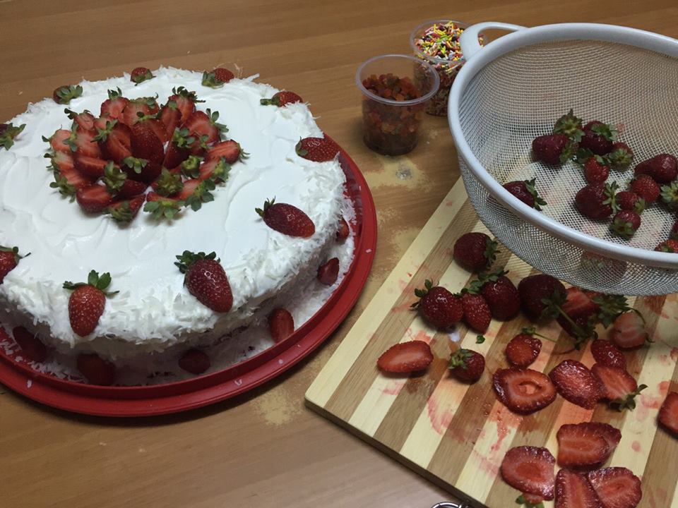 كيكة القشطة بالليمون ♡ مزينة بالكريما والفراولة بتمنى تعجبكم ^-^