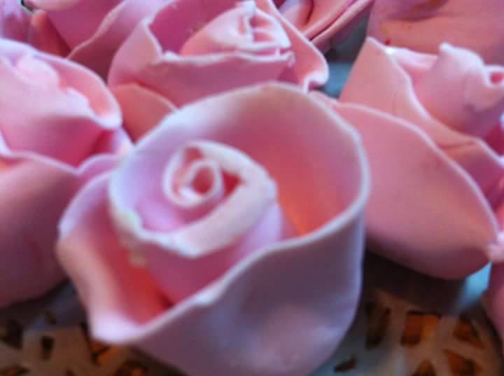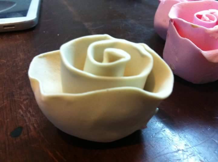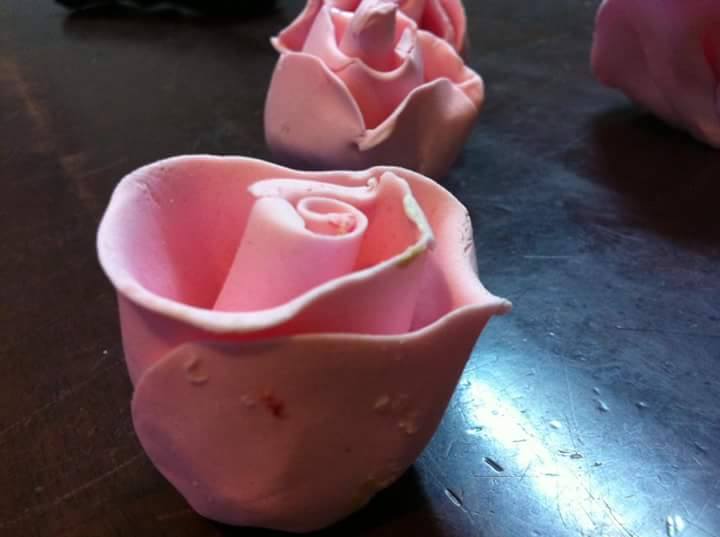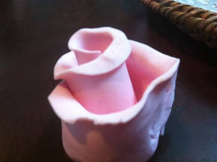 ولما بتحبي تغيري فيكي تلفي العجينه بالشكل يلي بتحبيه . على شكل زر ورد او على شكل وردة مفتحة . . او وردة عم تفتح . او على اشكال تاتبة غير الورد الجوري . وغيري بالالوان مرة حصري اللون ألاحمر الوردي ومرة باللون الموحود عندك ..