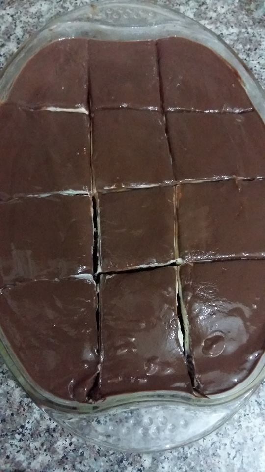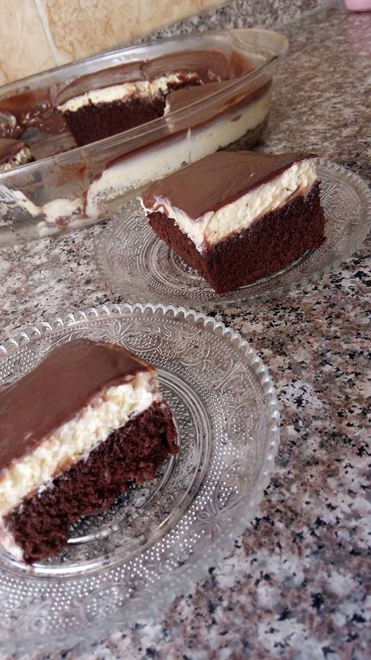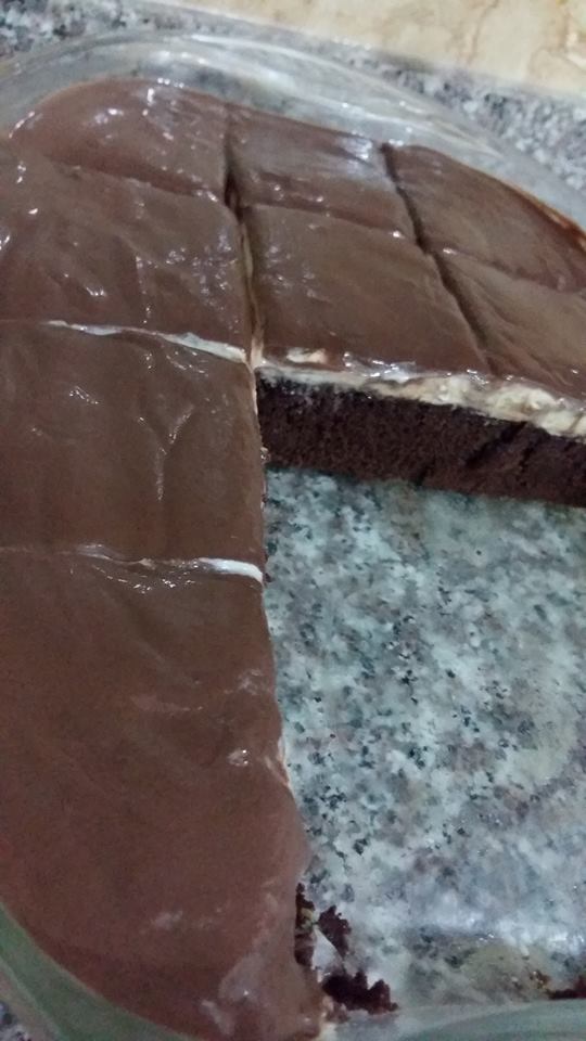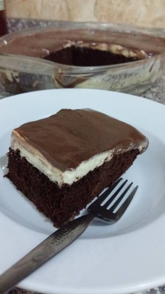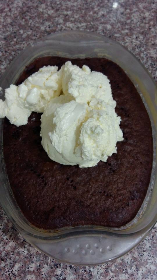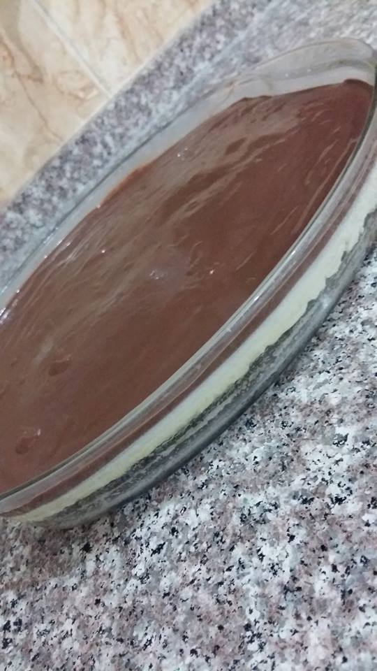 الكيكة الاسفنجية بالكريما و صوص الشوكلاتة