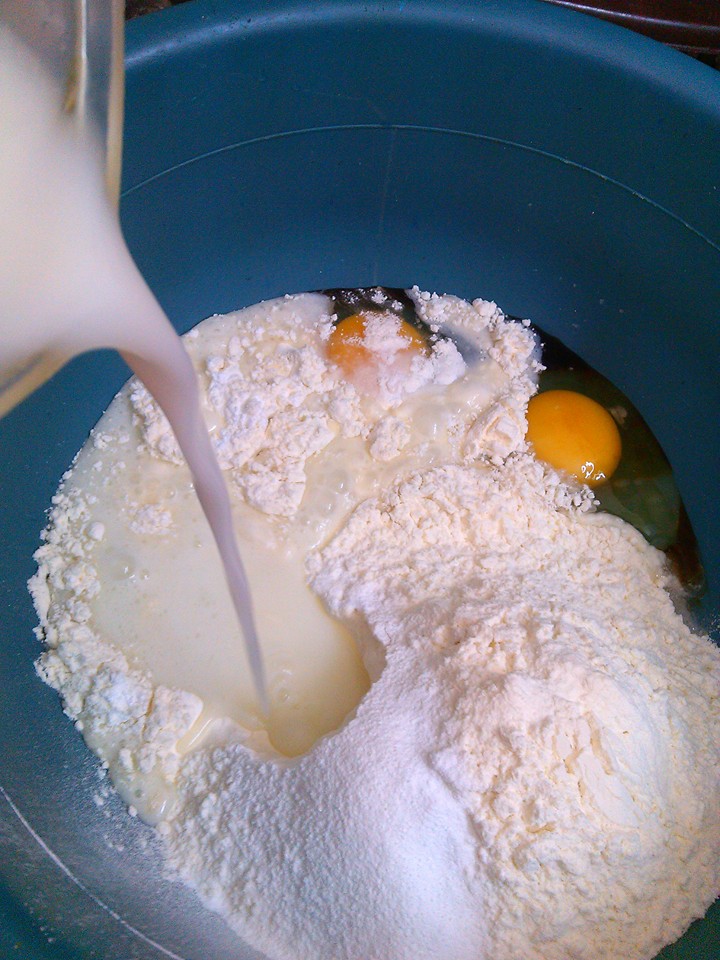 وبننخل الطحين والباكينج باودر والكربونة, وبنحرك منيح