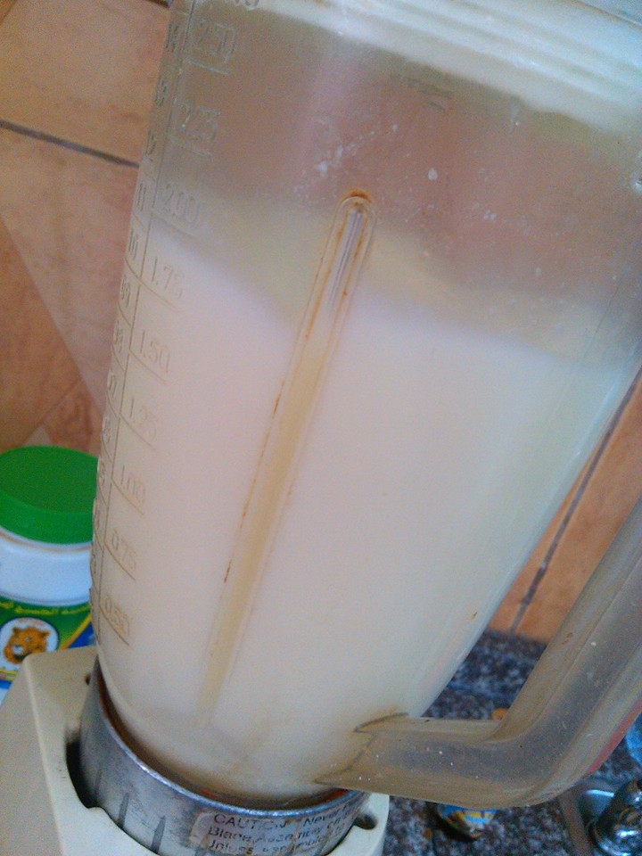 بعدين بنسكب الحليب الساخن وبنحرك