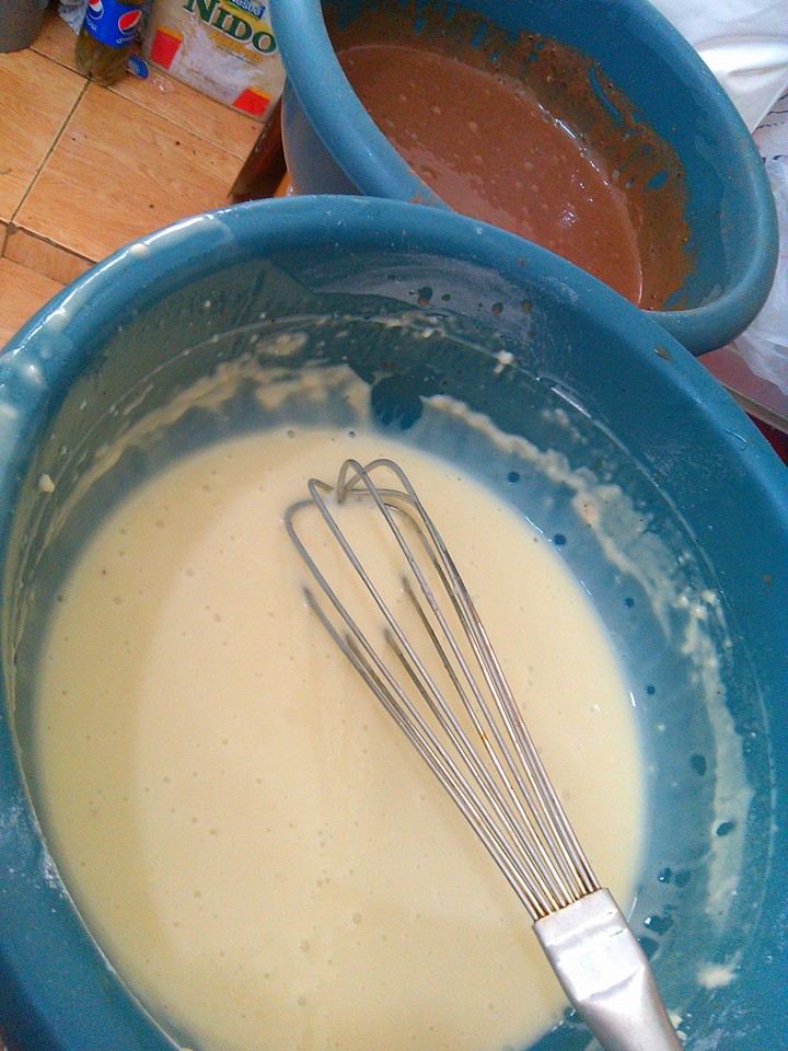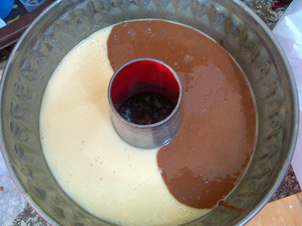 هلا قسمت الخليط قسمين ووضعت على أحد القسمين ملعقتين كبار كاكاو بودرة.