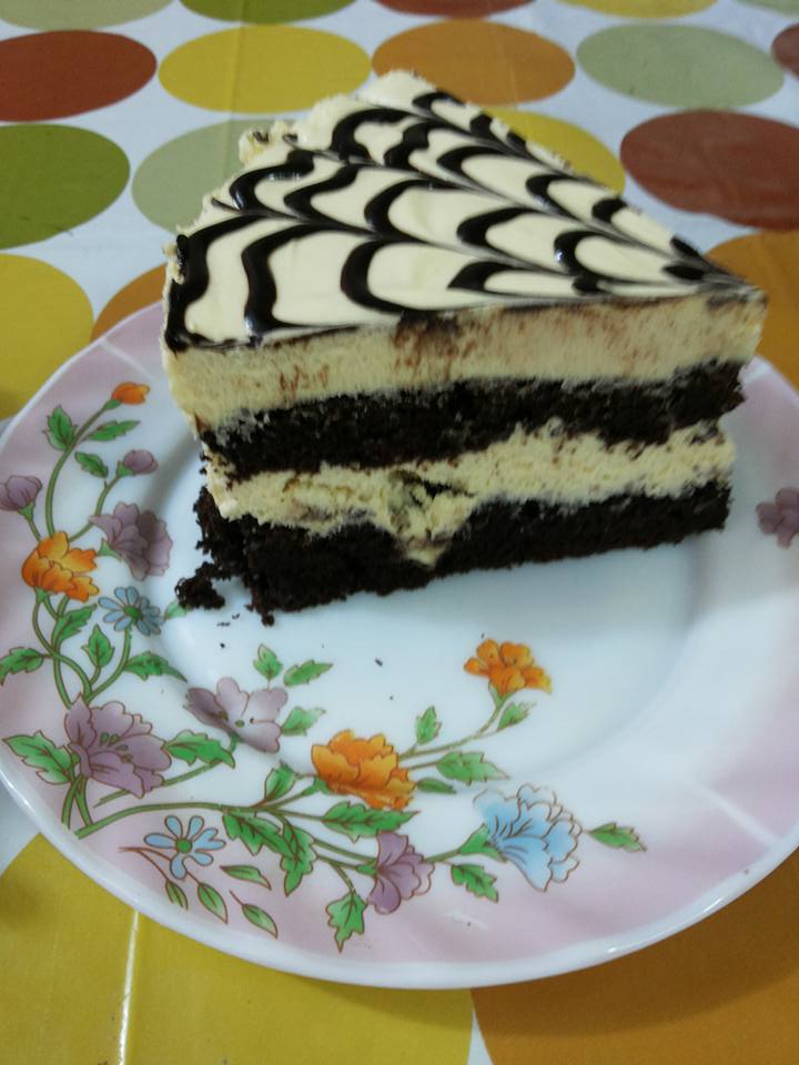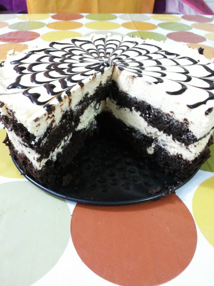 ..اي كيكه معتمده عندك بعد ما تشويهه بتقسميهها نصين .