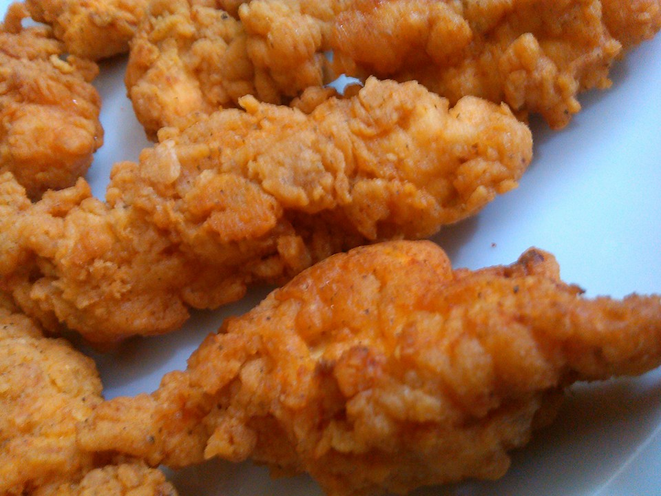 اصابع الدجاج فرايد تشكن المقرمشه الذهبيه الحارة