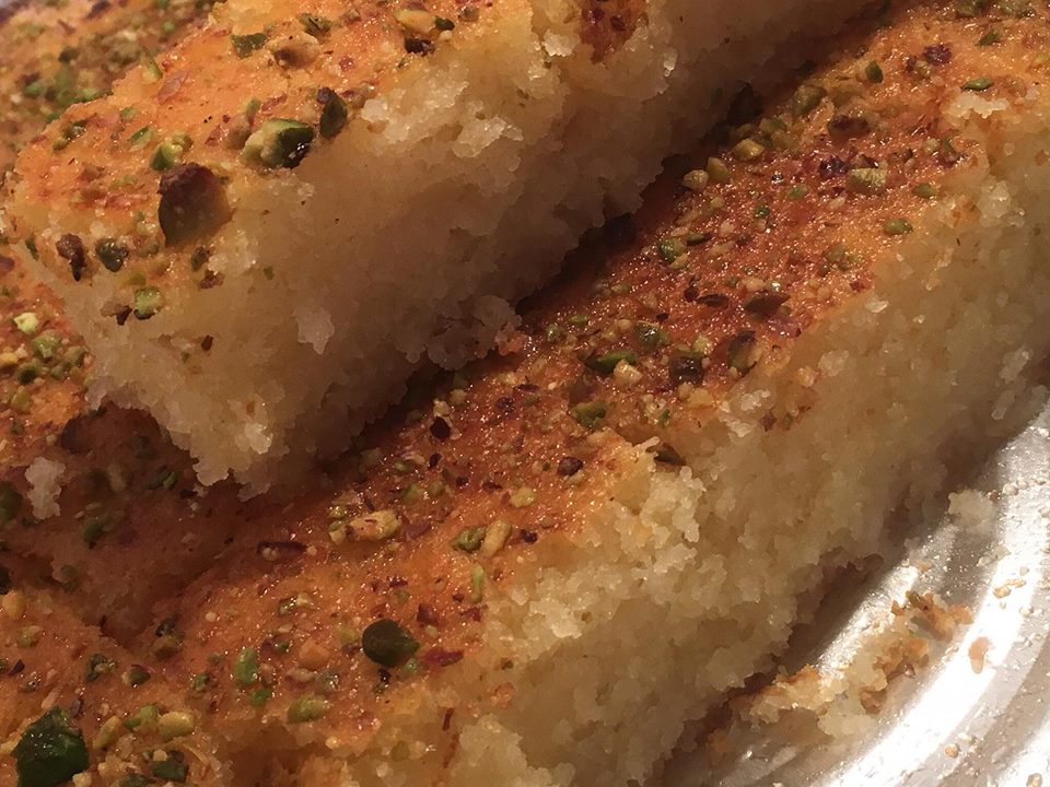كأسه حليب حبه بيض ربع كأسه سكر نص كاسة سمنة ذايبه نص كاسه زبادي وا بنخلطهم شوي وا بعدين نضيف كأسه سميد خشن كأسه سميد ناعم ربع ملعقه فانيليا ملعقه اكل بيكنج بودر رشه ملح وا نخلطهم من جديد