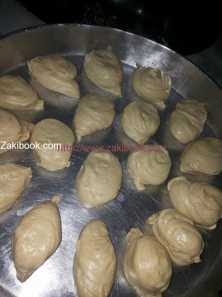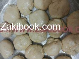 ملاحظة: كل ما صنعنا كرة من العجين ندهنها وايدينا بالسمنة.
