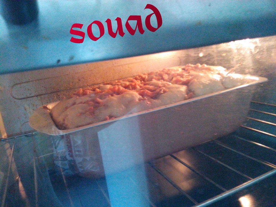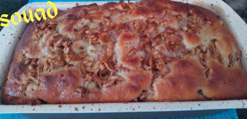 الكيك وعلى الوجه نضع حشوة التفاح وندخلها فرن